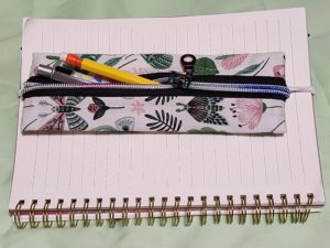 This is a zipper bookmark.  It allows you to save your place in your book while also having a pen or pencil handy.  The elastic on the back goes around your book saving your place.  The zipper pocket is large enough to carry a pen, pencil and even a highlighter all at once.   This would be perfect for students as well as any other avid reader.  It is 7-inches long and 2 1/2-inches wide.  Sizes may vary slightly.  They come in a variety of fun colors so there should be something for